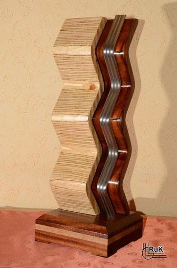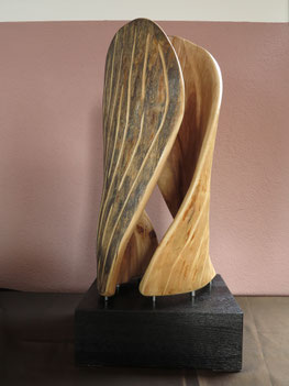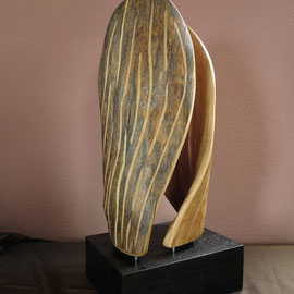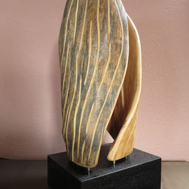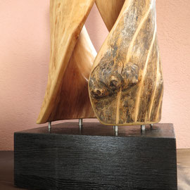 Für diese Dinge kommt fast jede Holzart in Frage. Natürlicher Wuchs oder auch aus industrieeller Fertigung ( z.B. Objekt "BEWEGUNGSMUSTER" ).