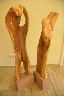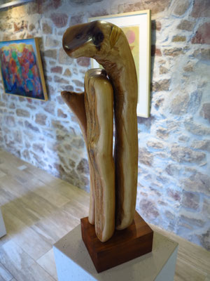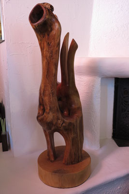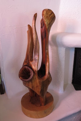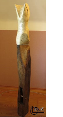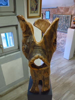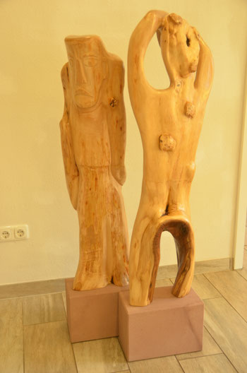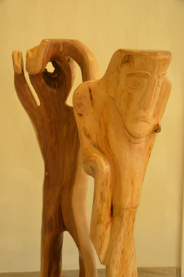 Zu jeder Skulptur entwickelt sich während der Bearbeitung, im Werden, eine Deutung oder kleine Geschichte, so, wie jeder Betrachter sich vom fertigen Objekt sein eigenes Bild macht. Das läßt oft ein breites Schmunzeln zu und beflügelt erneut.