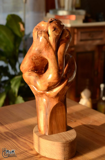 Apfelbaumholz,der Sockel aus Eiche, gebeizt